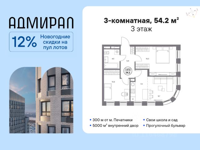 В динамично развивающемся районе Москвы, всего в 300 метрах от метро и в пешей близости от нового городского порта с протяженной набережной 13 км, свободной от автомобилей, продается 3-комнатная квартира площадью 54.20 м². без отделки. Квартира находится в корпусе жилого комплекса бизнес-класса "Адмирал", расположенного по адресу г. Москва, ул. Шоссейная, 4Д. (Застройщик - "Галс Девелопмент"). Новый амбициозный проект "Адмирал" станет частью одного из самых перспективных районов будущего - "Сити-2". В пешей доступности от современных башен Вас ждут живописные Люблинские пруды, 2 усадьбы с уникальной историей и уютный парк "Печатники" у Перервинского плёса. Район имеет отличную транспортную доступность: • 300 метров до станции метро "Печатники"; • Удобная пересадка на БКЛ и станцию МЦД-2; • 10 минут на машине до ТТК; • 15 минут до Садового кольца. Архитектура корпусов отличается динамичностью облика благодаря переменной этажности: высокие башни сочетаются с домами средней этажности. Изящным украшением становятся арочные витражи. Интеллигентный и современный стиль "Адмирала" продолжается в гранд-лобби: пастельные оттенки интерьера и фактурные элементы декора создают атмосферу безмятежного отдыха, особое ощущение простора дарят высокие потолки до 4 м и витражные окна. В домах предусмотрено от трех до шести скоростных лифтов, каждый из них спускается на любой этаж подземного паркинга и обладает удобными сенсорными панелями управления и низким уровнем шума. Благоустроенный двор площадью 5000 кв.м. украсят десятки видов гипоаллергенных растений. Здесь можно совершить приятный променад, по пути заглядывая за свежезаваренным кофе, уединиться за ноутбуком в комфортном коворкинге, занять ребенка играми в двухъярусном плейхабе или помедитировать на специальной площадке для йоги. Мягкий свет декоративных фонарей подчеркнет живописность местности, а чувство безопасности гарантируют круглосуточные системы видеонаблюдения. Дополнительные преимущества: • Высокие потолки от 2,9 до 3,25 м; • Бизнес-центр, школа и детский сад прямо на территории дома; • Подземный двухуровневый паркинг на 1955 машино-мест; • Кладовые помещения в тёплом контуре на 2м этаже; • Стрит-ритейл на первых этажах. Элитное жилье - 3-комнатная квартира рядом с метро Печатники.