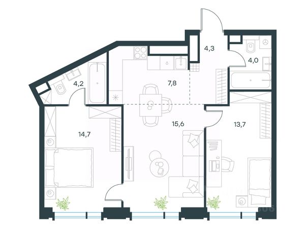 Цена указана с учётом скидки при 100%-й оплате, несубсидированной ипотеке, рассрочке (кроме программы "Рассрочка 0%"). В Академическом районе продаётся 3-комнатная квартира площадью 71.30 кв.м без отделки. Квартира расположена на 19-м этаже 19-этажного жилого комплекса бизнес-класса Левел Академическая (компания Level Group). Площади помещений определены кадастровым инженером по результатам обмеров. Отличная транспортная доступность: - 1 мин. пешком до станции метро "Академическая"; - 4 мин. на автомобиле до ТТК; - 8 мин. на автомобиле до Садового кольца; - 13 мин. на автомобиле до Кремля. Продуманный архитектурный проект: - современная архитектура от бюро UNK project; - высокие потолки в квартирах до 6,62 м; - окна в пол высотой 2,5-2,68 м с панорамным видом на МГУ, Москва-Сити и другие доминанты Москвы; - квартиры с моллированным остеклением - радиусные окна открывают увеличенный угол обзора; - более 20 вариантов планировочных решений; - уникальные квартиры с собственным патио и возможностью обустройства дровяного камина; - квартиры сдаются без отделки, что открывает свободу для создания интерьера по своему вкусу. Расположение: Камерный проект из 1 корпуса расположен тихом зеленом районе Москвы, в непосредственной близости к центру города. В округе построено 80 детских садов, 50 школ и 30 вузов, 7 из которых входят в топ100 вузов России: МГУ, МГИМО, РАНХиГС, МИСИС, РУДН, РЭУ им. Плеханова и РГУ нефти и газа им. Губкина. Этот район буквально утопает в зелени парков, начиная с уютного Академического в 6 минутах пешком и заканчивая одним из крупнейших в городе парком 50-летия Октября (12 минут на автомобиле). Общая площадь природных объектов в радиусе 2-6 км от дома - 476,5 га. Внутренняя инфраструктура: На территории жилого комплекса Левел Академическая откроется собственный торговый центр, а для отдыха жителей будут созданы общественные пространства: комфортное лобби с дизайнерской отделкой, окнами в пол и потолками высотой 4,5 м, а также две благоустроенные зоны - территория по периметру здания и пространство на стилобате. Во дворе на стилобате предусмотрены детская и спортивная площадки, коворкинг и лаунж-зона на открытом воздухе. Стилобат украсят скульптуры животных - жирафа, зайца и волка, которые станут ярким акцентом внутреннего двора жилого комплекса Левел Академическая, подчеркивая близость к музею Дарвина. Процент озеленения территории - 58%. Технологии и безопасность: Жителей жилого комплекса Левел Академическая не коснется ежегодное отключение горячей воды благодаря собственным центральным водонагревателям. Безопасность гарантирует круглосуточная охрана, безлимитный вайфай, круглосуточное видеонаблюдение. Удобное перемещение внутри комплекса будут обеспечивать 5 лифтов с доступом в паркинг с жилых этажей. п