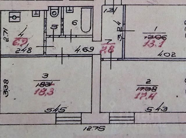 Лот 48352273. Просторная сталинка 82,1 м² с потолками 3 м — кирпичный дом 1958 года, тишина, сквер и идеальная планировка