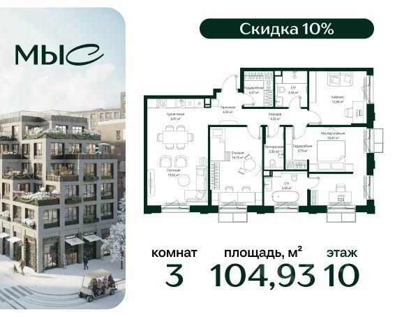 Прямая продажа от застройщика. Продаётся 3-комнатная квартира общей площадью 104.93 м² без отделки в премиальном жилом комплексе "МЫС" на 8-м этаже 12 этажного дома. Квартира расположена в корпусе "Волга". Проект МЫС — это, прежде всего, идеальное место для семей. В рамках проекта построят государственную школу, два детских сада и дворец спорта площадью 20 000 м2 с термальным комплексом, выплывным бассейном, фитнес-залом, теннисными, сквош и падел кортами и секциями для детей. На территории площадью, сравнимой с тремя парками Зарядье, появятся кафе и рестораны, пруд с набережной, спортивные и детские площадки, скейт-парк, лыжные и веломаршруты. Расположение: - 2 минуты до скоростной трассы М1 и Минского шоссе; - 10 минут до МКАД; - 15 минут до МЦД Лесной Городок - 20 минут до делового центра "Москва-Сити"; - 28 минут до аэропорта "Внуково". Благоустройство: - велосипедные и лыжные маршруты; - собственная набережная и парк; - лаунж-зоны в окружении природы; - беседки у очага; - дворец спорта площадью 20 000 м²; - термальный комплекс с тремя бассейнами; - 4 теннисных и падел-корта; - 6 сквош-кортов; - многофункциональный спортзал; - скейт-парк; - просторная площадь для прогулок с фонтаном; - детский клуб с творческими секциями; - гастро-доминанта; - кафе у пруда, рестораны, ритейл. Окружение - соседство с лесным фондом; - школа на 1250 мест и 2 детских сада на 350 и 255 мест; - Дубковский и Подушкинский леса, парк "Рассказовка", Мещерский парк.Действуют специальные условия при 100% оплате, подробности уточняйте у менеджера в офисе продаж.