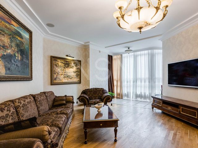 Квартира расположена на 9 этаже, имеет функциональную планировку, которая включает в себя: 2 спальни,просторную гостиную объединенную с кухней(Кухонный гарнитур Gulia Novars) , 2 санузла, постирочная комната , деревянные стеклопакеты , система индивидуального кондиционирования MITSUBISHI, приточно-вытяжная вентиляция, теплые полы. Квартира укомплектована итальянской мебелью и премиальной техникой.Окна квартиры ориентированы в сторону ТЦ Капитолий. Спуск на лифте из дома в подземный паркинг.