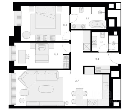 • ✓ В базе Циан 129 элитных 3-комнатных квартир на улице Поклонная в Москве