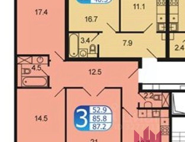 Трёхкомнатная квартира 60,9 м² в ЖК Лучи