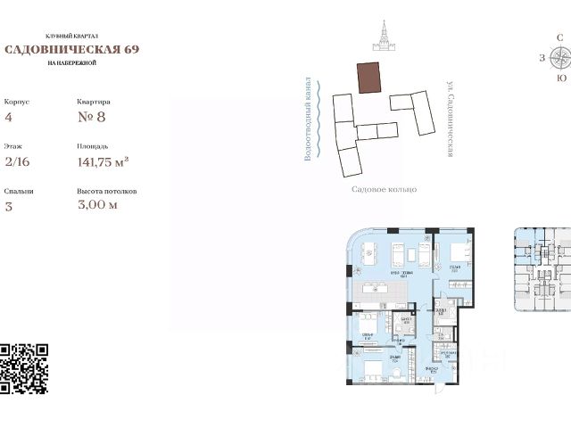 "Садовническая 69" — это клубный квартал класса deluxe, где каждая деталь продумана и тщательно выверена. В комплексе представлены разнообразные варианты жилья: видовые квартиры, резиденции с террасами и патио, пентхаусы и городские виллы. Всего в проекте четыре корпуса высотой от 2 до 16 этажей. Транспортная доступность На автомобиле комплекс находится всего в 700 метрах от Садового кольца и в 2,3 километрах от Кремля. За 15 минут можно добраться до Третьяковской галереи, ГУМа, парка "Зарядье" и Храма Христа Спасителя. До "Москва-Сити" — около получаса езды. Инфраструктура В "Садовнической 69" безопасность и комфорт жителей — приоритет. Круглосуточное видеонаблюдение, вход в жилой комплекс по персональным смарт-картам и в паркинг — по цифровому ключу обеспечивают надёжную защиту. В проекте предусмотрен двухуровневый подземный паркинг на 234 машино-места с пологим въездом, а также гостевая парковка на 8 машин. Есть кладовые для хранения. В центре квартала расположен ландшафтный парк с цветущими деревьями, плодовым садом и игровой зоной — это идеальное место для прогулок и отдыха на свежем воздухе. Поблизости от комплекса находятся школы, детские сады, кафе, рестораны и магазины. Всё необходимое для комфортной жизни — в шаговой доступности. Гранд-лобби с консьерж-сервисом, зимним садом, баром и камином создаёт атмосферу уюта и гостеприимства. Богатая инфраструктура проекта включает велнесс-зону с бассейном, фитнес-залом, хамамом, сауной и бьюти-зоной, а также приватные переговорные, зоны отдыха, комнаты для занятий с детьми и детские игровые пространства. Архитектура Технология строительства "Садовнической 69" — монолитная с панорамным остеклением и отделкой фасадов облицовочным камнем. 4 клубных корпуса расположились на 1 га приватной территории. Архитектура проекта объединяет современные тренды и уважение к историческому наследию острова Балчуг. Во главе элитного квартала величественно расположилась 59-метровая доминанта, из окон которой открываются картинные панорамы на Москву. О застройщике Застройщиком комплекса является компания, специализирующаяся на строительстве жилых комплексов. Она имеет опыт работы в качестве заказчика-застройщика и генерального подрядчика, что гарантирует высокое качество строительства и соответствие всем стандартам. Купить 3-комнатную квартиру - элитное жильё на набережной Садовническая в Москве.