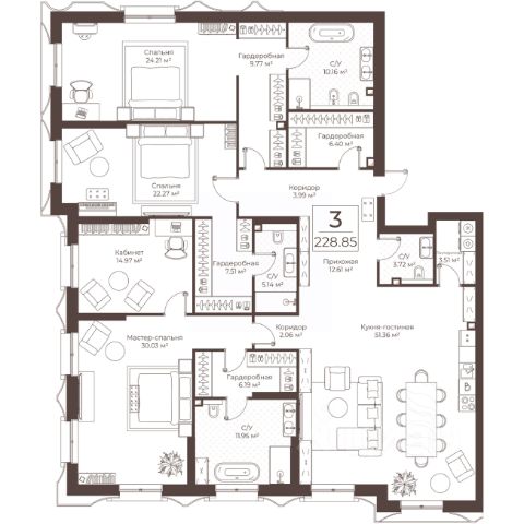 Купить элитную 3-комнатную квартиру бизнес-класса в районе Таганский в Москве