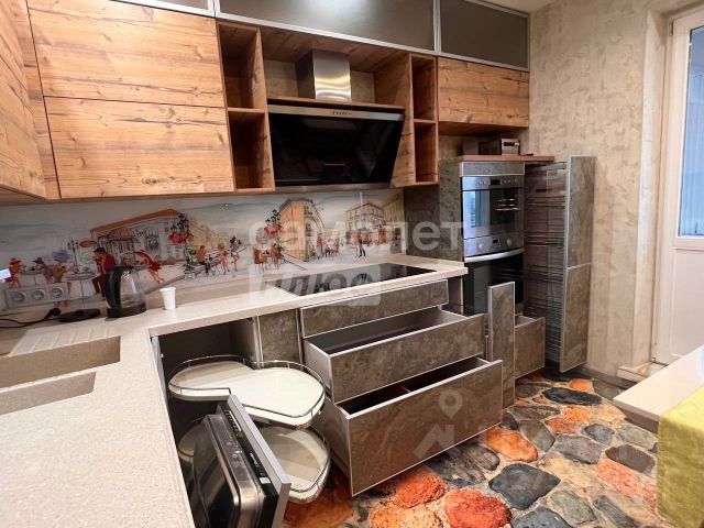 При ремонте электро-проводка выполнена ГОСТовскими негорючими проводами NYМ, сантехника разведена медью. По завершению ремонта установили кухню на заказ, где размеры подгонялись до миллиметров!!! Нижние фасады отделаны каменным шпоном. Отличная мебель, которая идеально подходит для продуманного антуража
