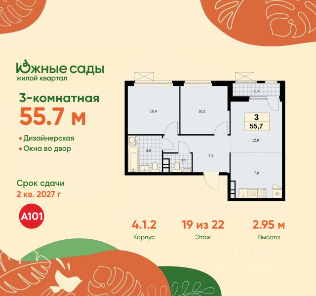 Продается трехкомнатная квартира 115 в новостройке ЖК "Южные Сады" по адресу Москва, ЮЗАО, Южное Бутово, ул. Бартеневская, д. 16. Общая площадь квартиры - 70.00 кв. м., этаж 21 из 24, секция 1. Тип проекта, по которому построен дом - монолит, компания-застройщик - ООО "А101". Стоимость квартиры - 23437400 Р. Срок сдачи - 2 квартал 2027. ПРЕДЛОЖЕНИЯ ОТ ЗАСТРОЙЩИКА В ОКТЯБРЕ 2025: Ипотека от 13,9 % для всех! На весь срок. "Семейная ипотека" вернулась. Ставка от 3,5 % на весь срок! Без удорожания! Выгодное ипотечное комбо: Ипотека от 2200 р./мес. и от 6 % после рождения ребёнка! Ипотека для всех "Держи пять!" - ставка 5 % на 2 года! *более подробную информацию по скидкам и акциям уточняйте в отделе продаж "Южные сады" на юго-западе Москвы - это жилой комплекс монолитных домов с авторской архитектурой, холлами в средиземноморском стиле, колясочными, современными лифтами, паркингом и кладовыми. Южную атмосферу в районе создадут: - перголы с вьющимися растениями, живые изгороди, садовые дорожки - цветущие, плодовые и вечнозелёные растения - стилизация под средиземноморский ландшафт - амфитеатр и игровой кластер со скалодромом. За безопасность "отвечают" закрытые дворы без машин с доступом только для жителей дома, видеонаблюдение, вход по магнитным ключам. Рядом ландшафтный парк "Южное Бутово", Черневские пруды: театры, танцплощадка, крытые беседки, детские и спортивные комплексы, пикниковые зоны, пешеходные дорожки, деревянные настилы. На первых этажах домов: супермаркеты, кафе, банки, фитнес, пекарни. В пешей доступности - торговые центры, гипермаркет, ФОК, действующая инфраструктура. Для семей с детьми - кружки, секции, детские клубы,центры развития, языковые школы. Преимущества "Южных садов": - атмосферное "средиземноморское" благоустройство - 3 станции метро: "Бунинская аллея", "Улица Горчакова", "Новомосковская" - в пределах 1,6 км - в окружении - развитая инфраструктура обжитой локации - в пешей доступности - Бутовский лесопарк Купить 3-комнатную квартиру - элитное жильё в районе Южное Бутово в Москве.