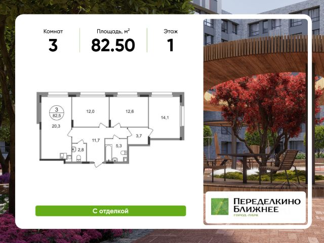 Продается трехкомнатная квартира в городе-парке "Переделкино Ближнее". Общая площадь квартиры - 95,6 кв. м, этаж 1 из 17. Срок сдачи - 3 квартал 2026 года. Тип дома - монолитный. Город-парк "Переделкино Ближнее" расположен в 8 км от МКАД по Боровскому шоссе. ТРАНСПОРТНАЯ ДОСТУПНОСТЬ: - 10 минут пешком до МЦД-4 "Мичуринец" - 15 минут пешком до станции метро "Рассказовка" Солнцевской линии - 10 минут на машине до станции метро "Филатов Луг" Сокольнической линии - 30 минут до центра Москвы - Прямой выезд на дорогу Солнцево-Бутово-Варшавское шоссе, минуя жилую застройку всего ЖК БЛАГОУСТРОЙСТВО: Новая фаза строительства уникальна своим расположением - в шаговой доступности парк на Лукинской улицы, река Алёшинка. На территории 18 фазы строительства будут построены 2 монолитных жилых корпуса повышенного комфорта разной этажности 7, 17 этажей. А также многоуровневый паркинг на 300 м/мест. Вход в жилую часть корпусов каждой секции осуществляется с двух сторон - с наружного контура жилого дома и со стороны дворового пространства, предусмотрен безбарьерный доступ. ВНУТРЕННЯЯ ИНФРАСТРУКТУРА: В рамках данной фазы, для жителей предусмотрено создание пространства, свободного от машин - благоустроенные огороженные дворы с современными детскими и спортивными площадками, разделенными на зоны по возрастам. На территории проекта есть все необходимые объекты социальной и бытовой инфраструктуры: детские сады, школы, магазины, паркинги, аптеки, поликлиники, пожарная часть и др. АВТОРСКИЙ ДИЗАЙН: Современный монолитный дом переменной этажности 7 и 17 этажей. На фасаде предусмотрены корзины для установки кондиционеров. Входные группы домов выполнены по авторскому дизайну. Колясочные располагаются при входе, велопарковка на -1 этаже.