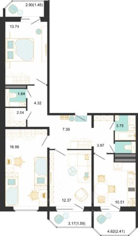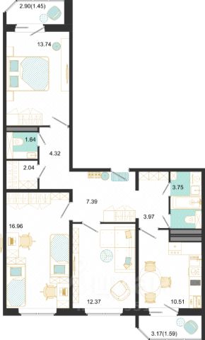 Продаётся 3-комнатная квартира в строящемся доме (Текстильщиков, 45), срок сдачи: I-кв. 2028, общей площадью 79.73 кв.м., на 1 этаже.