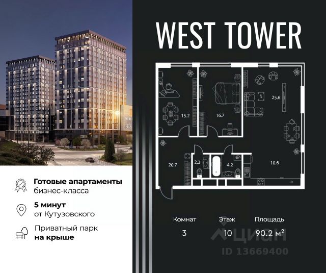 О квартире Продаётся 3-комнатная квартира общей площадью 79.6 кв.м. без отделки. Квартира расположена на 10 этаже корпуса 5.7 в жилом комплексе бизнес-класса "Среда на Лобачевского" в пешей доступности от метро "Аминьевская". О жилом комплексе "Среда на Лобачевского" полностью соответствует критериям современного жилого пространства. Взяв за основу рациональный подход, мы гармонично соединили дизайн, актуальные тренды и функциональность. Продуманный современный экстерьер и функциональные планировки внутри, приватные пространства и разнообразные досуговые зоны для каждого члена семьи — все это "Среда на Лобачевского". Инфраструктура Район отлично развит и наполнен жизнью, здесь уже есть вся необходимая инфраструктура — детские сады, школы, медучреждения, торговые центры, благоустроены парки для прогулок и отдыха, удобен и легкодоступен городской транспорт. Рядом расположены учебные корпуса крупных университетов — МГУ, МГИМО и РАНХиГС. Школы и детские сады в районе занимают высокие позиции в городских рейтингах, поэтому вам не придется беспокоиться о качестве образования детей. Как и об отдыхе: поблизости расположены живописные пруды, реки и парки. Это Парк Олимпийской деревни, Парк имени 50-летия Октября, Мещерский парк и Очаковские пруды. Теперь поставить галочки в еженедельном чек-листе "спорт-прогулки-встречи с друзьями" можно, не покидая любимый район. Особенности Особое внимание в проекте уделяется созданию функциональных пространств не только внутри дома, но и за его пределами. В ландшафтном парке "Среды на Лобачевского" расположены крытые зоны для спокойного времяпровождения, места для активного отдыха и спорта, коворкинг, соседский комьюнити-центр, водные объекты. —Ландшафтный парк во дворе. —Водный сад с зонами отдыха. —Зоны коворкинга. —Дизайнерские гранд-лобби. —Бесключевой доступ. —Подземный паркинг.
