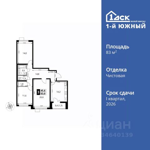 Прямая продажа от застройщика! Жилой Комплекс класса Комфорт Плюс. Продаётся 3-к квартира номер 394 общей площадью 83.2 кв.м. на 10-м этаже 24 этажного здания. Чистовая отделка. Цена с учётом скидки. Особенности квартиры: - МЦД-5 в пешей доступности - Квартал с южным садом - Свои 3 детских сада и 2 большие школы - Просторная спальня, в которой можно разместить большую кровать. - Распашная планировка - отличное сочетание удобства и свободы. - Гостевой санузел - комфорт и удобство для ваших гостей. - Просторная кухня - место для семейных ужинов и кулинарных экспериментов. - Просторная мягкая зона - комфорт и уют для отдыха всей семьи. - Возможность добавить спальное место - дополнительный комфорт для гостей. - Гардеробная - удобство для хранения и организации вещей. - Ниша под шкаф - компактное и удобное место для вещей. - Лоджия - уютное место для отдыха и тишины. Информация о комплексе: Одно из преимуществ проектов 1- ДСК большие застекленные лоджии. Другое преимущество честный евро-формат. Во всем проекте предусмотрена система Умный дом. В состав устанавливаемого пакета устройств входит: WiFi реле для управления группами потребителей, беспроводной кран перекрытия с эл. приводом, беспроводной сенсор протечки, Яндекс Станция Мини. Его расположение можно назвать удачным за счет транспортной доступности и близости к природным объектам. По соседству лес, а в каждом дворе плодовые деревья. Весной квартал окутывает бело-розовое облако: это цветут яблони, груши, сливы. К августу в воздух наполняется ароматом созревших плодов. Зимой среди покрытых инеем деревьев протянулась лыжня. Транспортная доступность: - Общественный транспорт: Действующая ж/д станция Булатниково (в перспективе будущая МДЦ D5) в пешей доступности, всего 10-12 минут. - Личный автотранспорт: Удобный выезд на трассу М4-Дон в сторону Москвы и области 850 м, до МКАД - 1 км Внутренняя инфраструктура: Красивые продуманные подъезды - еще одно преимущество проекта 1-й Южный. Вход в сквозные подъезды есть и с улицы, и со двора. Благодаря сплошному остеклению в них всегда светло и уютно. Подъезды расположены на уровне земли, поэтому и молодым родителям с коляской, и жильцам с ограниченными возможностями вход и выход неудобств не доставят. В помещении предусмотрено место под стойку ресепшен с выводом инженерных сетей. Если жильцы решат на общем собрании, что необходим охранник или консьерж, организовать для них рабочее место можно быстро и с минимальными затратами. В подъездах предусмотрены уборные для детей и взрослых. Колясочные в каждом подъезде позволяют поддерживать порядок и чистоту на этажах. На случай прогулки с четвероногим питомцем в непогоду в подъездах устроены лапомойки. Во дворах и на общественных территориях 1-ого Южного столько всего интересного для юных обитателей. Собственные 3 детских сада и 2 больших школы буквально под окнами Изюминка проекта - пешеходный бульвар-дендрарий, он идеален для семейных прогулок. По сторонам прогулочной