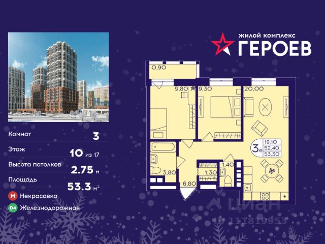 Продаётся 3-комнатная квартира в формате евро 54.20 кв. м. в жилом комплексе "Героев" в Балашихе, Железнодорожный. Квартира расположена на 10 этаже 407 корпуса. В наличии квартиры с отделкой. Всего 40 минут до центра Москвы. При покупке квартиры в сданном доме ключи выдаются сразу! Жилой квартал "Героев" - это уютный проект для семей с детьми. В квартале созданы все условия для досуга всех возрастов: игровые и спортивные площадки, места для отдыха и прогулочные зоны. За 15 минут можно дойти от дома до Ольгинского лесопарка, популярного места для отдыха на свежем воздухе. На территории жилого комплекса уже открыт детский сад на 250 мест и началось строительство еще одного - для 220 малышей, а также школы для 1320 учеников. Рядом работают магазины, кафе, супермаркеты, пункты выдачи. Преимущества: • В уютных светлых квартирах с просторными кухнями-гостиными удобно встречать гостей и проводить время наедине друг с другом. • Благодаря увеличенному остеклению в комнатах много света. • Квартиры продаются с отделкой, можно заселяться сразу после получения ключей.