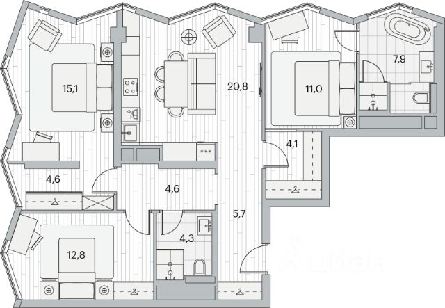 Однокомнатная квартира площадью 87 кв.м. на 10 этаже дома бизнес-класса "CRYSTAL Трилогия". Жилой комплекс CRYSTAL Трилогия комфорт в сердце Хорошево-Мнёвников Удобное расположение и транспортная доступность CRYSTAL Трилогия расположен в престижном районе Хорошево-Мнёвники, на улице Генерала Глаголева, всего в нескольких минутах от живописного Серебряного бора и набережной Москвы-реки. Из окон открываются панорамные виды на воду и зелёные зоны, создавая ощущение гармонии с природой. Автомобильная доступность • Звенигородское шоссе и проспект Маршала Жукова быстрый выезд в любую часть города. • 7 км до ТТК, 9 км до МКАД, 10 км до Садового кольца. • Общественный транспорт: • Ближайшая станция метро "Народное ополчение" (2 км). Добраться можно пешком или на автобусе. • В пешей доступности строятся 3 новые станции метро, что повысит транспортную связанность района. Инфраструктура: всё для жизни в шаговой доступности Комплекс входит в состав масштабного квартала Union Park (40 га) это современная городская среда с продуманной инфраструктурой. Образование и развитие: • Лучшие школы Москвы: 1515, 1517, 138, Курчатовская школа. • Детские сады: "Wow Kids Серебряный бор", логопедический "ДАРвиль". • Музыкальная школа им. В. В. Андреева. Медицина и спорт: • Поликлиника "Семейный доктор", медцентр "Мед-Лайт", стоматология. • Спорткомплекс "Серебряный" с бассейном, тренажерным залом и солярием. Магазины и рестораны: • Премиальные магазины: "Азбука вкуса", "ВкусВилл", "Лента", "Магнолия". • Рестораны и кафе: Asia Inn, Wells Home Cafe, рыбный ресторан The Mope. Футуристичная архитектура с продуманным комфортом CRYSTAL Трилогия это уникальный дизайн и эргономичные планировки: Внешний облик: • Кристаллическая архитектура с панорамными эркерами и фасадами в оттенках горького шоколада. • Трехуровневая структура, где на верхнем ярусе вы увидите геометрические эркеры с панорамным остеклением, на среднем уровне расположены квартиры с окнами на 1-2 стороны, а на нижнем отделка австрийским клинкерным кирпичом. Внутреннее пространство: • Светлые входные группы с лаунж-зонами для отдыха и мероприятий. • Подземный паркинг (по машиноместу на квартиру) и кладовые для хранения. • Закрытые дворы с спортивными зонами: • Теннисный корт. • Площадки для воркаута. • Беговые дорожки. • Поле для игровых видов спорта. Квартиры с продуманными планировками • 14 комнатные варианты. • Высокие потолки и панорамное остекление для максимальной инсоляции. • Ровные стены и черновая/чистовая отделка на выбор. • Готовые решения для комфортного заезда.
