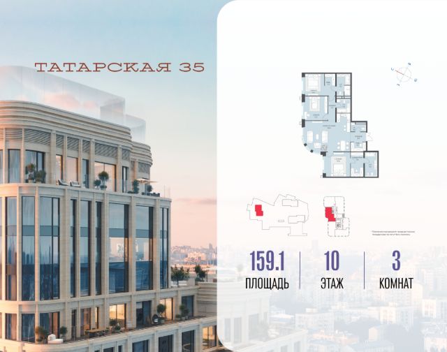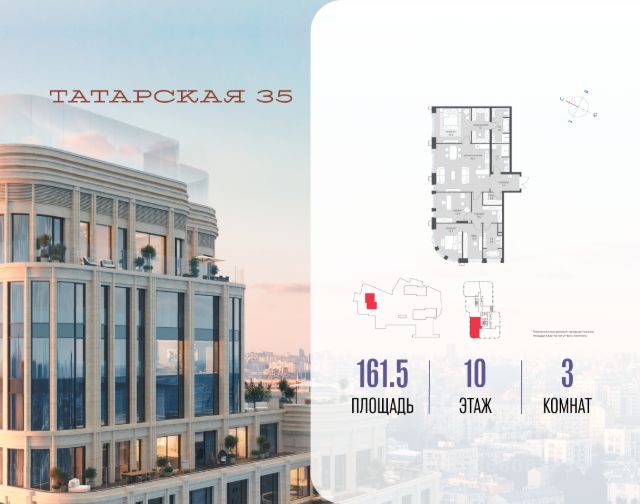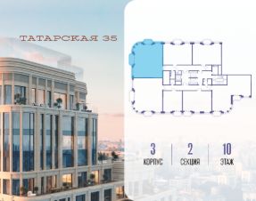 Продается просторная квартира площадью 161.50 м2 в жилом комплексе ТАТАРСКАЯ, 35. Квартира находится в 1 секции корпуса 1. Этаж 10-й из 20. Квартира без чистовой отделки, с просторной кухней 40.10 м2. Жилая площадь 52.80 м2. Высота потолка от 3.50. ТАТАРСКАЯ, 35 - новая архитектурная доминанта Замоскворечья, достопримечательность на фотопанорамах исторического центра Москвы. Элитный дом, созданный для тех, кто умеет смотреть далеко вперед, мыслить масштабно и воплощать собственный сценарий жизни. Вдохновляющие прогулки по променаду набережной, в уютных переулках, в парке "Зарядье", в Михайловском саду и Репинском сквере. Наслаждение высоким искусством в Третьяковской галерее, Доме Музыки, театральном музее им. А.А. Бахрушина, театре на Малой Ордынке. За окнами - Кремль, высотка на Котельнической, панорамы Замоскворечья и острова Балчуг, огни Садового кольца. Собственные спорт-румы, детская, репетиторская, бьюти-пространства, деловое пространство с коворкингом, переговорной и сигарной. Собственный трехуровневый фитнесс-центр с бассейном, тренажерным залом, сауной, хаммамом, массажным кабинетом. Площадь двора - 1,8 га, половина территории покрыта деревьями, кустарниками и лужайками. Дом расположен внутри Садового кольца - отсюда в считанные минуты можно добраться до важнейших мест столицы: достопримечательностей и парков, театров и ресторанов, деловых и административных центров. 7 минут до Кремля на автомобиле, 15 минут до Третьяковской галереи и 8 минут до Садового кольца пешком. Планировочные решения и визуализации предварительны, возможны изменения.