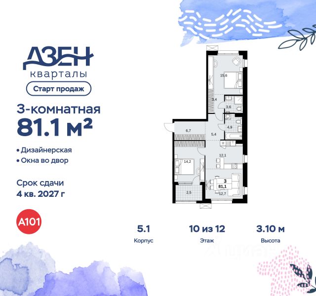 Продается трехкомнатная квартира 368 в новостройке ЖК "Дзен-кварталы" по адресу Москва, ТиНАО, Новомосковский АО, Сосенское С/П, ул. Александры Монаховой, корп. 5.3. Общая площадь квартиры - 97.60 кв. м., этаж 10 из 12, секция 8. Тип проекта, по которому построен дом - монолит, компания-застройщик - ООО "А101". Стоимость квартиры - 24895808 Р. Срок сдачи - 4 квартал 2027. ПРЕДЛОЖЕНИЯ ОТ ЗАСТРОЙЩИКА В ОКТЯБРЕ 2025: Ипотека от 13,9 % для всех! На весь срок. "Семейная ипотека" вернулась. Ставка от 3,5 % на весь срок! Без удорожания! Выгодное ипотечное комбо: Ипотека от 2200 р./мес. и от 6 % после рождения ребёнка! Ипотека для всех "Держи пять!" - ставка 5 % на 2 года! *более подробную информацию по скидкам и акциям уточняйте в отделе продаж ЖК "Дзен-кварталы" на юго-западе Москвы расположен вдоль берегов Ивановского пруда и реки Варварки, гармонично сочетает насыщенную городскую инфраструктуру и мягкое умиротворение природы. Архитектурные решения домов стандарт-, комфорт- и бизнес-класса переменной этажности объединяют скандинавскую функциональность и утонченный японский минимализм. Район отличается высокой транспортной доступностью - всего 5 минут пешком до станций метро "Новомосковская" и "Потапово". Кварталы с собственной благоустроенной набережной, парками, тихими дворами без машин, зелёными скверами располагают к спокойному созерцательному отдыху. На первых этажах откроются магазины, спортивные залы, поликлиники, аптеки, кофейни, пекарни, фитнес-залы, салоны красоты. В районе появится собственная школа, расположенная у воды, и 2 детских сада. В декоре лобби использованы японские мотивы - отделка стен светлым деревом и натуральным камнем. На подземных этажах расположены паркинги и кладовые. Преимущества "Дзен-кварталов" - ст. метро "Новомосковская" и "Потапово" - 5 мин. пешком - удобный выезд на трассу Солнцево - Бутово - Варшавское шоссе - уникальное благоустройство в стиле Japandi - благоустроенная набережная - насыщенная инфраструктура
