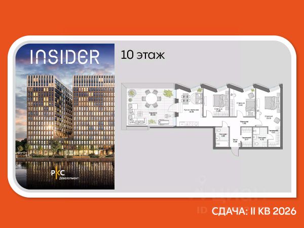 Продается 3-к квартира без отделки в ЖК "Shagal". Общая площадь квартиры — 84.4 кв. м, этаж 10 из 19. Тип дома — монолитный. Цена указана при 100% оплате. Квартал Shagal — крупнейший проект комплексного освоения в Москве. В проекте реализуется продуманная система маршрутов. Еда, покупки, услуги, прогулки, спорт, образование, работа и развлечения — все будет находиться рядом с домом: принцип 15-минутной доступности инфраструктуры и сервисов. Разнообразие и продуманность пешеходных маршрутов, а также короткие расстояния между основными точками притяжения мотивируют резидентов Shagal с удовольствием передвигаться по району пешком, не выпадая из ритма большого города. Продуманная транспортная сеть района и безопасный скоростной режим создают комфортные условия для перемещений любым способом: на автобусе, машине, самокате или велосипеде. Не нужно выезжать из района, чтобы получить комфорт и сервис самого высокого современного стандарта: все необходимые услуги, инфраструктура, парки и вторая по протяженности набережная в городе — на расстоянии 15-минутной прогулки от вашего дома. Квартал Shagal станет первым в Москве жилым районом, где будут комплексно реализованы инновационные подходы в проектировании и строительстве зданий. Архитектурная композиция состоит из домов отличающегося типа. Высотные башни-доминанты с видовыми квартирами, дома пониже, растворяющиеся в спокойствии внутренних двориков, малоэтажные камерные таунхаусы и разноэтажные дома с лоджиями на первой береговой линии соединяются в одно эстетичное современное произведение. В результате создаётся насыщенное идентичное пространство, подчёркнутое плавностью природных форм, наполненное светом, воздухом и свободой.