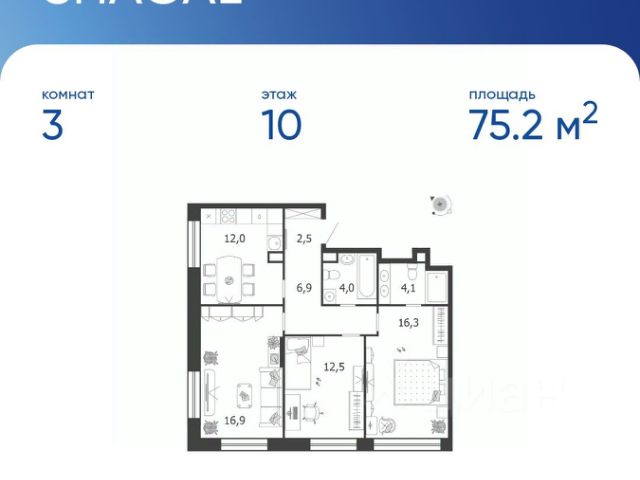 Продается квартира 254, по адресу г. Москва, ЮАО, Даниловский, ул. Автозаводская, вл. 23/75, корпус Жилой квартал Shagal, 3 очередь, 5 этап, корпус 5 в Shagal на 10 этаже, с площадью 75.2 м2.
