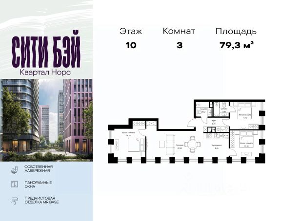 Продаётся 3-комнатная квартира 149 м². В жилом районе Алиа на 10-м этаже 11-этажного дома. Жилой район Алиа — это дома бизнес-класса у слияния Москвы-реки и Сходни. Алиа находится в Покровском-Стрешневе, экологически чистом районе на престижном северо-западе столицы. Район возводится на бывшей территории Тушинского аэрополя, где никогда не было промышленного производства. Алиа — это район разностороннего развития, спроектированный по принципу WORK.LIVE.PLAY.LEARN. Это "15-минутный город", где вся необходимая для комфортной жизни инфраструктура — на расстоянии приятной прогулки. У района удобное расположение: отсюда меньше 10 минут пешком до станций метро "Спартак" и "Тушинская" и всего полчаса на автомобиле до центра города или аэропорта Шереметьево. Архитектурную концепцию Алиа разработало бюро SOM (Skidmore, Owings & Merrill), авторы знаменитой "Бурдж-Халифа". В Алиа больше 140 планировочных решений, среди которых — редкие для Москвы форматы: квартиры с окном в ванной, пентхаус, сити-юниты и таунхаусы. Почти половина территории района отдана под благоустройство. В Алиа три парка: Линейный парк с кафе и магазинами, Центральный парк с амфитеатром, сухим фонтаном и большим плейхабом для детей всех возрастов и Прибрежный парк на собственной набережной, одной из самых длинных в Москве. В каждом урбан-блоке — закрытый внутренний двор с гипоаллергенными растениями и детской площадкой. В лобби каждого жилого корпуса в Алиа оборудована зона ожидания, колясочная, гостевой санузел и лапомойка для домашних животных. За стойкой ресепшена резидентов и их гостей встречает консьерж. Центральное лобби урбан-блока — это стильное общественное пространство с коворкингом, лаундж-зоной и кофе-пойнтом. Это "вторая гостиная" жителей урбан-блока и одно из мест, где формируется комьюнити Алиа. Два ключевых объекта инфраструктуры в Алиа — это спорткомплекс "Чкалов Арена", где представлены 25 видов спорта, и самый большой в стране бизнес-парк класса A, благодаря которому району обеспечено быстрое развитие.