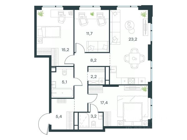 Цена указана с учётом скидки при 100%-й оплате, несубсидированной ипотеке, рассрочке (кроме программы "Рассрочка 0%"). Продается 3-комнатная квартира площадью 91.60 кв. м без отделки. Квартира находится на 10 этаже 20-этажного корпуса 5, в новом жилом комплексе бизнес-класса Level Войковская, расположенном рядом с живописным заповедником "Покровское-Стрешнево" (застройщик - компания Level Group/Левел групп). Прекрасная транспортная доступность - 7 мин. пешком до станции МЦК "Балтийская"; - 15 мин. пешком до станции метро "Войковская"; - 8 мин. на машине до ТТК; - 15 мин. на машине до центра Москвы; - 20 мин. на машине до Москва-Сити. Продуманный архитектурный проект - стильная архитектура от мастерской Фефелова В. В.; - панорамные виды на парки, Химкинское водохранилище и Останкинскую башню; - лобби с высотой потолков до 6,45 метров; - более 20 видов планировочных решений, включая редкие форматы квартир с террасой и увеличенной высотой потолков до 5,42 метров; - 2 варианта дизайнерской отделки в корпусе 4, предлагаются как дополнительная опция к отделке white box: стиль Modern в светлых холодных тонах и стиль Classic в нейтральной бежевой гамме. Квартиры в корпусах 3 и 5 сдаются без отделки. Расположение Level Войковская строится в престижном Северном округе Москвы. Развитая инфраструктура и живописная природа переплетаются в единый ансамбль, столь значимый для комфортной жизни. Войковский район окружают парки и набережные. В шаговой доступности - парк "Покровское-Стрешнево", не более 15-ти минут на велосипеде занимает путь до Тимирязевского парка и 9-ти минут до парка усадьбы Михалково. Рядом более 60 школ, 75 дошкольных учреждений, 17 государственных и 6 частных вузов, 25 супермаркетов, 4 торговых центра, среди которых ТЦ "Метрополис" и ТЦ "Авиапарк". Внутренняя инфраструктура На территории жилого комплекса предусмотрены коммерческие помещения: кафе, ресторан, пекарня и другие сервисы откроются на первых этажах корпусов. Для жителей будет доступен отапливаемый подземный паркинг на 244 машино-места с доступом с любого этажа на лифте. На территории паркинга будет расположено 125 кладовых помещений для хранения сезонного инвентаря. Лобби и благоустройство Дизайн лобби Level Войковская создан совместно с бюро BLANK. Это уютные гостиные, где хочется задержаться. Теплая цветовая гамма, ресепшен, зоны ожидания, лапомойки и гостевые санузлы - каждая деталь превращает лобби в комфортное продолжение вашего дома. 1,15 га площади в первых двух этапах строительства отведено под приватный внутренний двор, который спроектирован совместно с бюро "Правда". Детские площадки для всех возрастов, спортивные пространства для йоги, воркаута и петанка, уютные зоны для тихого отдыха или работы. Здесь утро начинается с вдохновения, а вечер наполнен приятными моментами. Лифты Комфортное перемещение внутри жилого комплекса будут обеспечивать надёжные лифты с доступом в паркинг с жилых этажей. В каждом корпусе предусмотрено по 3 грузопассажирских лифта.