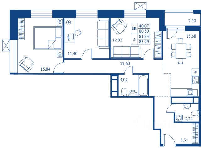 Продаётся 3-комнатная квартира в строящемся доме (Дом 2), срок сдачи: II-кв. 2028, общей площадью 81.24 кв.м., на 11 этаже. Жилой комплекс "Поколение Первых" - новый проект от ГК "Профи Инвест", осуществляющей деятельность на рынке жилой недвижимости более 15 лет (построено более 1 млн. кв. метров жилья). Жилой комплекс располагается в центре города Королёв возле ТЦ "Глобус", рядом с выездом на скоростное Ярославское шоссе. В составе комплекса 10 домов переменной этажности, размещенных на стилобатной части, в которой расположен двухуровневый паркинг на 1 166 машино-мест и 124 кладовых помещения. На первых этажах будут расположены коммерческие площади под ритейл и необходимые жителям сервисы: ФОК с бассейном, сауной и спа-зоной, культурно-досуговый центр, офисные помещения, магазины, аптека, кафе, банки, помещения бытового обслуживания. Проектом предусмотрено строительство детского сада на 210 мест, а также строительство пристройки на 450 мест в средней общеобразовательной школе 5, находящейся по адресу: Октябрьский бульвар, 33. Район застройки жилого комплекса "Поколение первых" характеризуется развитой инфраструктурой, что позволит резидентам проекта бизнес-класса #вКоролевеЖить максимально комфортно, имея все "под рукой" и в шаговой доступности. Рядом с жилым комплексом находятся детские сады и школы, театр юного зрителя, городские парки и скверы, лыжная трасса и велосипедная дорожка. Сам город Королёв, находится к северо-востоку от Москвы, в 23 км от центра, в 6 км от МКАД и в 30 минутах езды на автомобиле до ЦКАД. По данным статистики, примерно 67% жителей города имеют высшее или среднетехническое образование. Сегодня Наукоград Королёв - это научно-технический центр, обладающий огромным потенциалом к дальнейшему развитию инфраструктуры, обеспечивающей комфортное проживание населения, его занятость и интеллектуальное развитие.