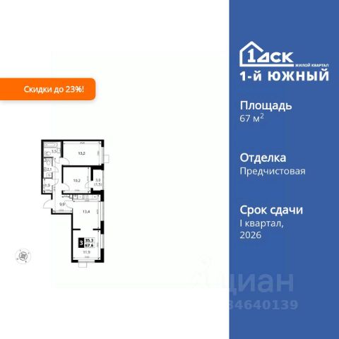 Прямая продажа от застройщика! Жилой Комплекс класса Комфорт Плюс. Продаётся 3-к квартира номер 247 общей площадью 67.4 кв.м. на 11-м этаже 25 этажного здания. Отделка Whitebox. Цена с учётом скидки. Особенности квартиры: - МЦД-5 в пешей доступности - Квартал с южным садом - Свои 3 детских сада и 2 большие школы - Угловая планировка - больше пространства для ваших идей. - Гостевой санузел - комфорт и удобство для ваших гостей. - Евроформат - просторное и удобное жилье с отличной планировкой. - Просторная мягкая зона - комфорт и уют для отдыха всей семьи. - Кухня-гостиная - идеальное пространство для встреч с близкими. - Возможность добавить спальное место - дополнительный комфорт для гостей. - Гардеробная - удобство для хранения и организации вещей. - Ниша под шкаф - компактное и удобное место для вещей. - Лоджия - уютное место для отдыха и тишины. Квартира с предчистовой отделкой (White box). Вам не придется заниматься черновыми и трудоёмкими работы, а чистовую отделку и дизайн - сделайте на свой вкус. Информация о комплексе: Одно из преимуществ проектов 1- ДСК большие застекленные лоджии. Другое преимущество честный евро-формат. Во всем проекте предусмотрена система Умный дом. В состав устанавливаемого пакета устройств входит: WiFi реле для управления группами потребителей, беспроводной кран перекрытия с эл. приводом, беспроводной сенсор протечки, Яндекс Станция Мини. Его расположение можно назвать удачным за счет транспортной доступности и близости к природным объектам. По соседству лес, а в каждом дворе плодовые деревья. Весной квартал окутывает бело-розовое облако: это цветут яблони, груши, сливы. К августу в воздух наполняется ароматом созревших плодов. Зимой среди покрытых инеем деревьев протянулась лыжня. Транспортная доступность: - Общественный транспорт: Действующая ж/д станция Булатниково (в перспективе будущая МДЦ D5) в пешей доступности, всего 10-12 минут. - Личный автотранспорт: Удобный выезд на трассу М4-Дон в сторону Москвы и области 850 м, до МКАД - 1 км Внутренняя инфраструктура: Красивые продуманные подъезды - еще одно преимущество проекта 1-й Южный. Вход в сквозные подъезды есть и с улицы, и со двора. Благодаря сплошному остеклению в них всегда светло и уютно. Подъезды расположены на уровне земли, поэтому и молодым родителям с коляской, и жильцам с ограниченными возможностями вход и выход неудобств не доставят. В помещении предусмотрено место под стойку ресепшен с выводом инженерных сетей. Если жильцы решат на общем собрании, что необходим охранник или консьерж, организовать для них рабочее место можно быстро и с минимальными затратами. В подъездах предусмотрены уборные для детей и взрослых. Колясочные в каждом подъезде позволяют поддерживать порядок и чистоту на этажах. На случай прогулки с четвероногим питомцем в непогоду в подъездах устроены лапомойки. Во дворах и на общественных территориях 1-ого Южного столько всего интересного для юных обитателей. Собственные 3 детских сада и
