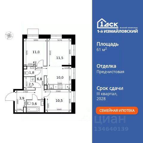 Рассрочка 0% с первоначальным взносом от 20% Квартира на 11 этаже в жилом комплексе премиум-класса "Преображенская площадь". Общая площадь: 111.01 кв.м. Проект премиум-класса в историческом районе Москвы. До метро "Преображенская площадь" 3 минуты пешком. Квартиры сдаются без отделки и в свободной планировке, чтобы жители могли оформить пространство с учетом своей индивидуальности. Высота потолков от 3,15м, широкоформатное остекление, 3-5 квартир на этаже. Система Умный дом. Дизайнерские лобби. Внутренний двор 1,5 га функциональное и безопасное пространство для игр, работы и занятий спортом. Пешеходный променад для прогулок. Дома переменной этажности. Есть подземный паркинг. Жилой комлекс находится в окружении парков Сокольники, Черкизовский, Измайловский, заповедника Лосиный остров и ВДНХ, а также вблизи пешеходной набережной. Комфортная удаленность от центра: 7 минут на автомобиле до ТТК, 8 минут до Садового кольца, 25 минут до Кремля.