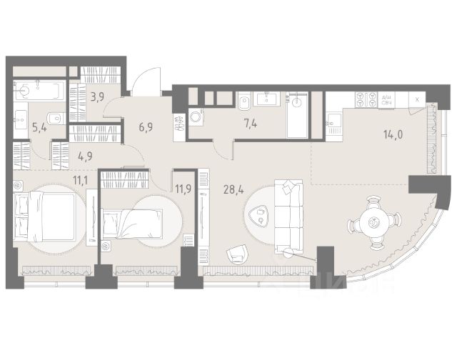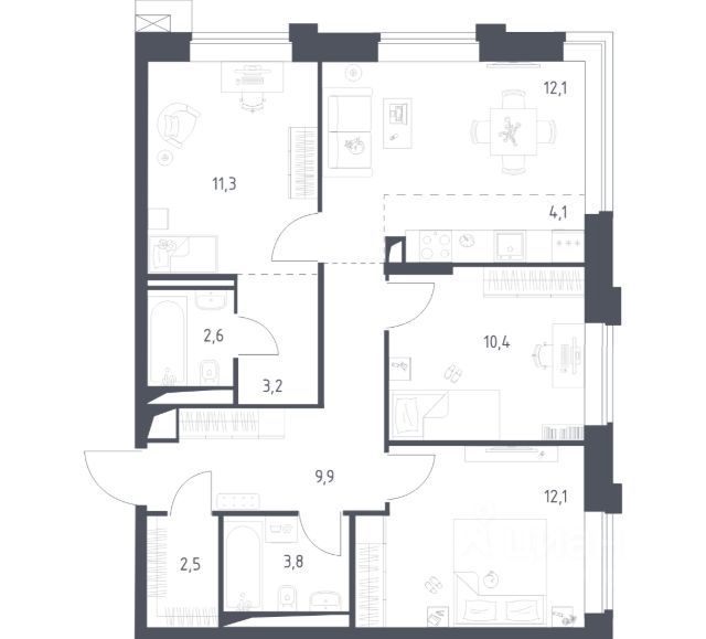 О квартире Продаётся 3-комнатная квартира общей площадью 83.1 кв.м. без отделки. Квартира расположена на 11 этаже корпуса 5.7 в жилом комплексе бизнес-класса "Среда на Лобачевского" в пешей доступности от метро "Аминьевская". О жилом комплексе "Среда на Лобачевского" полностью соответствует критериям современного жилого пространства. Взяв за основу рациональный подход, мы гармонично соединили дизайн, актуальные тренды и функциональность. Продуманный современный экстерьер и функциональные планировки внутри, приватные пространства и разнообразные досуговые зоны для каждого члена семьи — все это "Среда на Лобачевского". Инфраструктура Район отлично развит и наполнен жизнью, здесь уже есть вся необходимая инфраструктура — детские сады, школы, медучреждения, торговые центры, благоустроены парки для прогулок и отдыха, удобен и легкодоступен городской транспорт. Рядом расположены учебные корпуса крупных университетов — МГУ, МГИМО и РАНХиГС. Школы и детские сады в районе занимают высокие позиции в городских рейтингах, поэтому вам не придется беспокоиться о качестве образования детей. Как и об отдыхе: поблизости расположены живописные пруды, реки и парки. Это Парк Олимпийской деревни, Парк имени 50-летия Октября, Мещерский парк и Очаковские пруды. Теперь поставить галочки в еженедельном чек-листе "спорт-прогулки-встречи с друзьями" можно, не покидая любимый район. Особенности Особое внимание в проекте уделяется созданию функциональных пространств не только внутри дома, но и за его пределами. В ландшафтном парке "Среды на Лобачевского" расположены крытые зоны для спокойного времяпровождения, места для активного отдыха и спорта, коворкинг, соседский комьюнити-центр, водные объекты. —Ландшафтный парк во дворе. —Водный сад с зонами отдыха. —Зоны коворкинга. —Дизайнерские гранд-лобби. —Бесключевой доступ. —Подземный паркинг.