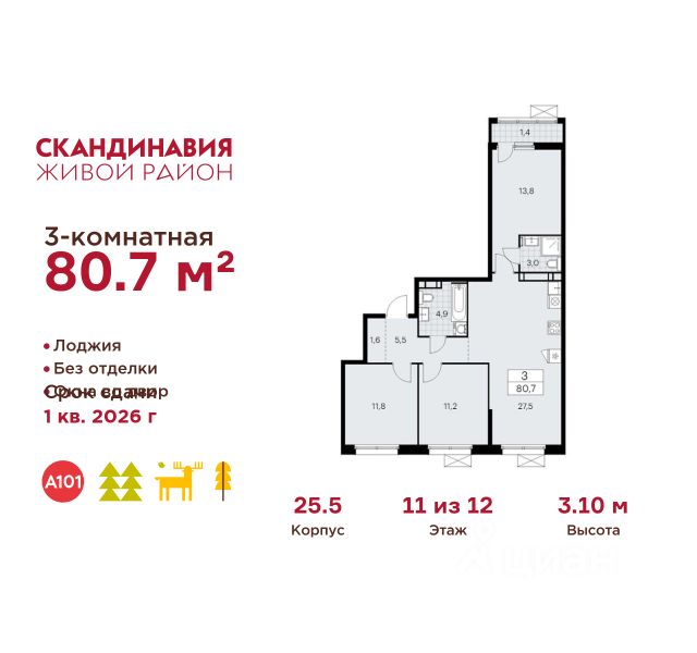 Продается 3-комн. квартира, с отделкой в ЖК "Новые Ватутинки. Квартал у реки". Общая площадь: 56.8 кв.м., жилая: 36.2 кв.м., площадь кухни: 4.5 кв.м. Этаж: 11. Район расположен всего в 14 километрах от МКАД по Калужскому шоссе, в центральной части Новой Москвы. Добраться сюда можно на автобусах и маршрутках от станций метро "Ольховая", "Теплый Стан" и "Бульвар Адмирала Ушакова". Время в пути от "Теплого Стана" и "Ольховой" занимает в среднем до 20 минут, даже в часы пик. В 2025 году рядом начнется строительство новой станции метро "Десна" (Троицкая линия), которая будет находиться в пешей доступности. Благодаря удачному расположению и развитой инфраструктуре Новые Ватутинки становятся одним из культурных и образовательных центров Новой Москвы. Строительство нового микрорайона началось с трех жилых корпусов, оснащенных подземными паркингами, индивидуальными кладовыми и коммерческими помещениями на первых этажах. Заречный имеет два удобных выезда на Калужское шоссе, что обеспечивает свободный проезд без заторов. В будущем жители также смогут пользоваться станцией метро "Десна", выбрав общественный транспорт. В районе предусмотрено строительство двух образовательных комплексов с детскими садами и школами, поликлиники и торгового центра Сквозь весь микрорайон — от будущей станции метро до набережной и парка "Андерсен" — протянется пешеходный бульвар длиной 1,5 км с уютными скверами, мини-площадями и садами. Архитектурная концепция предусматривает постепенное снижение этажности ближе к бульвару, создавая приятную для жизни и прогулок городскую среду. Принцип "город в гармонии с природой" реализован через дворы без машин и безбарьерное пространство на всей территории. Внутренние дворы будут предназначены для тихого отдыха и детских игр, а активные зоны разместятся на крупных плейхабах и в общественных пространствах. "Андерсен" станет центром активного досуга: здесь запланированы вело- и пешеходные маршруты, спортивные площадки, зоны для индивидуальных тренировок на свежем воздухе, а также места для рыбалки, сапбординга и тюбинга. Квартирный фонд отличается разнообразием планировок и продуманной эргономикой: просторные квартиры, большие лоджии, по две ванные комнаты. Свободные планировки позволят легко зонировать пространство под личные нужды — создать уютную спальню, рабочее место или гостиную. В цокольном этаже предусмотрены кладовые для хранения сезонных и крупных вещей, а также подземный паркинг с индивидуальными и семейными машино-местами. Спуститься к автомобилю можно прямо из квартиры — на лифте. Проект включает систему видеодомофонии: жители смогут получать уведомления о визитах гостей в режиме онлайн, открывать входную дверь удалённо, сохранять снимки с панели вызова, а также при желании — подключить наблюдение за камерами в лифтах через мобильное приложение. Выдача ключей в 2027г.