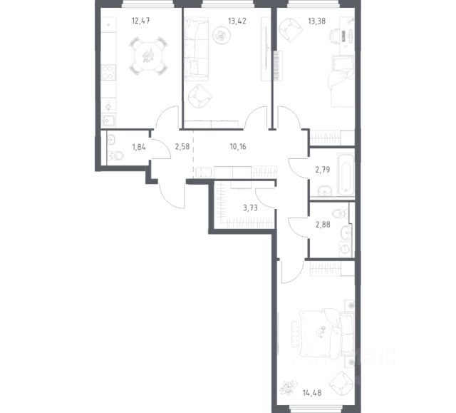 Квартира с кухней-гостиной и тремя спальнями в Квартале Герцена. Особенности планировки: второй санузел, гардеробная, окна на две стороны, постирочная, предчистовая отделка. Квартиру можно купить онлайн. В квартире выполнена отделка "под чистовую". Установлены окна с двойным стеклопакетом, радиаторы с терморегуляторами. На полу цементно-песчаная стяжка. В квартиры заведены кабели для интернета и ТВ. Входная сейф-дверь не требует замены. Организован поквартирный учёт энергоресурсов (водоснабжение, отопление, электричество). Квартал "Герцена" расположен в Бирюлёве Восточном — районе на юге Москвы. Дорога до ТТК займет всего полчаса на автомобиле, до станции метро и ж/д станции "Царицыно" — 13 минут, а до автовокзала "Южные ворота" — 20 минут. До автобусных остановок можно дойти пешком. В 2027-2028 году откроется новая станция метро "Лебедянская", дорога до неё займет всего 18 минут. Общая площадь "Квартала Герцена" составляет 27,3 га. Дома состоят из разноуровневых секций высотой от 6 до 55 этажей с видовыми террасами и балконами. На территории квартала будет построена поликлиника, детский сад на 350 мест и воспитательно-образовательный комплекс на 1075 мест, а также рестораны, клиники, магазины и салоны красоты. Объявление от застройщика. Ипотека, материнский капитал. Обмен — один из способов покупки. Обмен подойдёт, если вы хотите быстро поменять старую квартиру на новую. Получить ипотеку или рассрочку, а также обменять квартиру можно онлайн. Запишитесь на онлайн-презентацию по телефону или на сайте. квартиры в нашей базе: ГРЦ01.2-Ж4.11.14.
