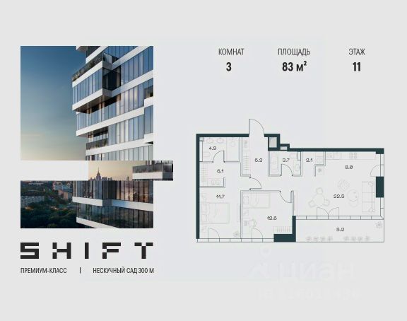 3-к квартира в премиальном комплексе SHIFT на 11-м этаже в 18 этажном здании. Общая площадь 88.3 кв. м. SHIFT - новый премиальный проект от девелопера PIONEER в Донском районе, в 300 м от Нескучного сада. Главная особенность проекта - 5 башен, в которых воплощен принцип модульной архитектуры: каждый этаж смещен относительно предыдущего, что создает эффект парящих в воздухе граней. Архитектура SHIFT создана самым востребованным бюро Москвы - "Цимайло Ляшенко и Партнеры". У жилого квартала удобное расположение: Ленинский проспект ведет прямо к Садовому кольцу и в центр, а быстрый выезд на ТТК станет ключом к любому району Москвы. Многообразие сервисов и коммерческих помещений создает в SHIFT всю необходимую инфраструктуру: кафе и рестораны, street retail, супермаркет и многое другое. Преимущества проекта: - Потолки от 3,65 м - Панорамные окна и террасы - Приватный ландшафтный двор-парк 4 000 м2 - Коммерческая инфраструктура 4 000 м2 - Клубная инфраструктура 350 м2 Девелопер: За 24 года на рынке недвижимости компания PIONEER реализовала более 30 проектов. Сегодня PIONEER - девелопер премиальной недвижимости с 4 проектами класса премиум и deluxe. Звоните, и мы с удовольствием расскажем все подробности о проекте и условиях покупки. Продажа от застройщика. Покупка доступна в ипотеку.