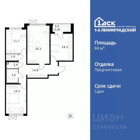 Прямая продажа от застройщика! Жилой Комплекс класса Комфорт Плюс. Продаётся 3-к квартира номер 144 общей площадью 84.1 кв.м. на 11-м этаже 14 этажного здания. Предчистовая отделка. Цена с учётом скидки. Особенности квартиры: - Организуем показ в удобное для вас время! - Просторная спальня, в которой можно разместить большую кровать. - Распашная планировка - отличное сочетание удобства и свободы. - Гостевой санузел - комфорт и удобство для ваших гостей. - Просторная кухня - место для семейных ужинов и кулинарных экспериментов. - Просторная мягкая зона - комфорт и уют для отдыха всей семьи. - Лоджия - уютное место для отдыха и тишины. - Панорамное остекление лоджии - открывает вид на окружающий мир. Квартира с предчистовой отделкой. Вам не придется заниматься черновыми и трудоёмкими работы, а чистовую отделку и дизайн - сделайте на свой вкус. Информация о комплексе: В концепции благоустройства гармонично сочетаются черты двух городов: прогулочные бульвары напоминают петербургские проспекты. Каждый элемент ЖК продуман для комфорта жителей, включая домашних питомцев. В каждой квартире - базовый пакет "Умная квартира" с защитой от протечек, голосовым управлением и возможностью расширения функций. Управляйте техникой из любой точки мира. Продуманная среда, технологии и забота о деталях создают пространство для жизни с безупречным комфортом. Транспортная доступность: 15 минут пешком до станции Молжаниново (Планерная), МЦД3. Всего в 7 км от МКАД по Ленинградскому шоссе, сразу после пересечения с Международным шоссе. Внутренняя инфраструктура: В квартале созданы уютные дворики для детских игр и отдыха взрослых. Детские зоны отделены от взрослых, а спортивные площадки вынесены за пределы дворов. Все зоны обустроены с использованием экологичных материалов, а игровое оборудование разработано с участием детских психологов. Для велосипедистов проложены дорожки к живописным прудам. На первых этажах зданий с внешней стороны комплекса расположены магазины, аптеки и кафе - всё необходимое для повседневной жизни в шаговой доступности. Идеальная среда для комфортного отдыха и активного досуга. Квартира с предчистовой отделкой - ваш дизайн без черновых работ