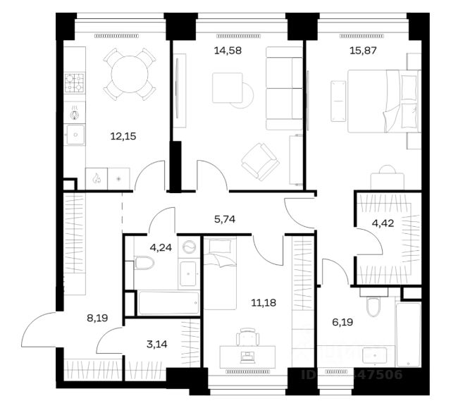 Арт. 100769978 Продаётся евро 4-комнатная квартира в строящемся доме (Корпус 3), срок сдачи: IV-кв. 2027, общей площадью 80,77 кв.м., на 11 этаже. NOVA - первый проект в коллекции samolet select, который сочетает в себе образец практичной премиальности и гармоничного соседства с природой. Архитектура от голландского бюро De Architekten Cie. Архитектура, которая гармонично вписывается в современный облик города и никогда не устареет, это дом на века. 12 минут до комплекса "Москва-Сити", 10 минут до Садового кольца, МГУ и парка Воробьевы Горы. Ближайшая станции метро Минская находится в 16 минут ходьбы.
