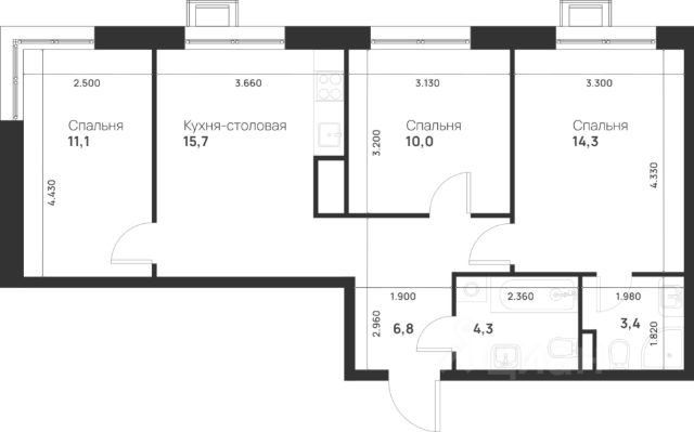 3-комн. кв., 87,8 кв.м -------------------- Продажа квартира, муниципальный округ Коммунарка, Новомихайловское шоссе, дом 1, корпус 2, этаж 11, кв. 109 --------------------