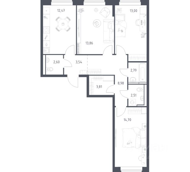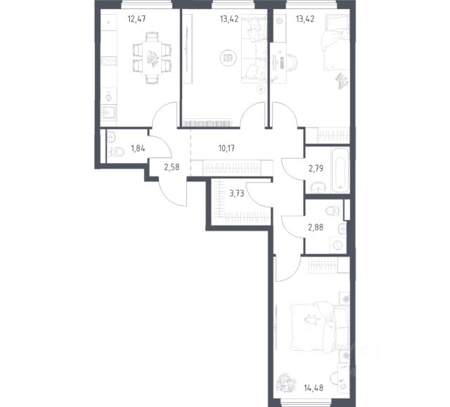 Квартира с кухней-гостиной и тремя спальнями в Квартале Герцена. Особенности планировки: окна на две стороны, предчистовая отделка. Квартиру можно купить онлайн. В квартире выполнена отделка "под чистовую". Установлены окна с двойным стеклопакетом, радиаторы с терморегуляторами. На полу цементно-песчаная стяжка. В квартиры заведены кабели для интернета и ТВ. Входная сейф-дверь не требует замены. Организован поквартирный учёт энергоресурсов (водоснабжение, отопление, электричество). Квартал "Герцена" расположен в Бирюлёве Восточном — районе на юге Москвы. Дорога до ТТК займет всего полчаса на автомобиле, до станции метро и ж/д станции "Царицыно" — 13 минут, а до автовокзала "Южные ворота" — 20 минут. До автобусных остановок можно дойти пешком. В 2027-2028 году откроется новая станция метро "Лебедянская", дорога до неё займет всего 18 минут. Общая площадь "Квартала Герцена" составляет 27,3 га. Дома состоят из разноуровневых секций высотой от 6 до 55 этажей с видовыми террасами и балконами. На территории квартала будет построена поликлиника, детский сад на 350 мест и воспитательно-образовательный комплекс на 1075 мест, а также рестораны, клиники, магазины и салоны красоты. Объявление от застройщика. Ипотека, материнский капитал. Обмен — один из способов покупки. Обмен подойдёт, если вы хотите быстро поменять старую квартиру на новую. Получить ипотеку или рассрочку, а также обменять квартиру можно онлайн. Запишитесь на онлайн-презентацию по телефону или на сайте. квартиры в нашей базе: ГРЦ01.1-Ж5.11.1.