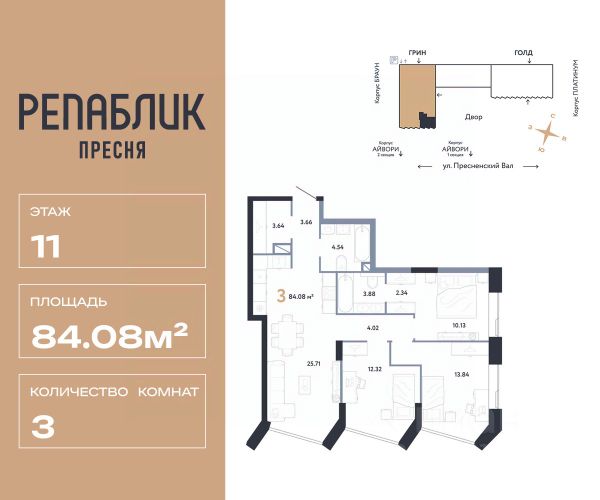 Рассрочка 0% с первым взносом от 20%, ипотека с субсидией или наличные. Подберём способ оплаты индивидуально. Продается 4комнатная квартира на 11 этаже от застройщика Страна Девелопмент. Площадь квартиры 118.82 кв. м. Дизайн-квартал "Republic" — новый проект премиум-класса в Москве от федерального застройщика "Страна Девелопмент". ЦАО, Пресня, 7 мин. от метро "Белорусская". 10 жилых башен и 4 восстановленных здания локомотивного депо образуют уникальное пространство. "Republic" — место, где вы ощутите гармонию истории и современности. За 12 мин. вы сможете дойти до Московского зоопарка, за 10 мин. на авто доехать до Патриарших прудов и Белого дома. Преимущества • Благоустройство. SPA-комплекс с бассейном и термами, гастрономический, учебный и шопинг-центры, приватный бульвар и яркие арт-пространства — для жителей предусмотрены все элементы премиального комфорта. • Панорама на центр. Наслаждайтесь видами ЦАО каждый день: панорама на историческую Пресню и башни Москва-Сити — из своей квартиры или с приватной террасы на крыше. • Концептуальное лобби в каждой башне. С общей террасой на кровле, с библиотекой, коворкингом и фитнес-рум. Стойка консьержа перетекающая в бар и др. • Современные форматы квартир. Свободные планировки, с террасой или балконом, с возможностью установки камина, от 1-комнатных до пентхаусов. • Отделка Квартиры сдаются без отделки или в формате White box. При White box уже выполнены все шумные и грязные работы: произведена разводка электричества с подрозетниками, установлены откосы из гипсокартона, устроена стяжка пола с шумоизоляцией и др. Способы покупки Сотрудники "Страна Девелопмент" будут сопровождать вас на каждом этапе сделки, помогут получить одобрение по ипотеке или снизить ежемесячный платеж. - ипотека (стандартная/с субсидией/траншевая) - рассрочка (с ПВ от 20%) - с использованием материнского капитала - оплата наличными