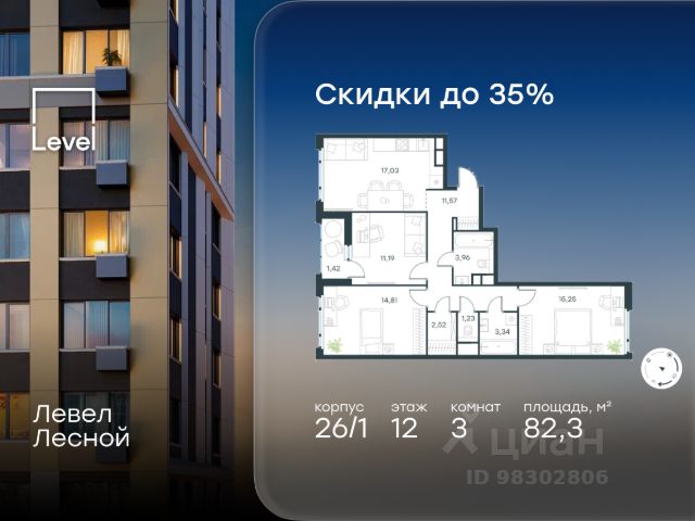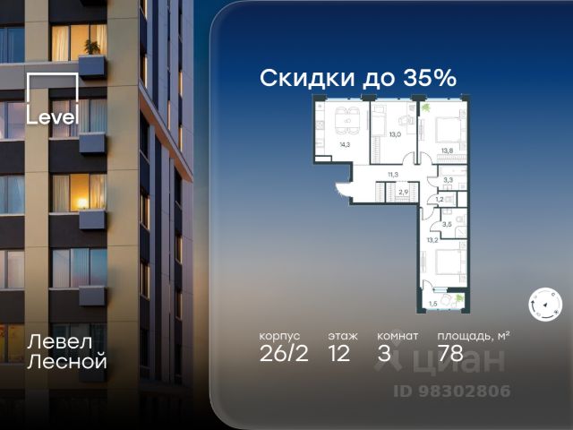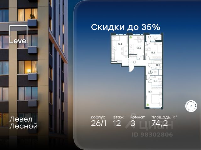 Прямая продажа от девелопера. В жилом квартале комфорт-класса "Новое Пушкино" (девелопер Ingrad) продаётся 3-спальная квартира площадью 69.80 кв.м без отделки. Квартира расположена на 12 этаже 15-этажного дома, корпус 21. Расположение и окружение: Жилой квартал "Новое Пушкино" расположен в экологичном городе Пушкино. Рядом с кварталами расположены: Северный лесопарк - 650 м, пушкинский ЦПКиО - 1 км, дендрарий - 1 км, ферма-экопарк "Птичник" - 1,2 км, парк "Серебрянка" вдоль одноимённой реки - 3,5 км. В окрестностях есть большие водоёмы и лесные массивы, где можно загорать, плавать и наслаждаться пикником на берегу. Отличная транспортная доступность: До Ярославского шоссе, по которому можно добраться до МКАД, всего 3 км. Важным пунктом развития инфраструктуры станет строительство Мытищинской хорды (Северного дублёра МКАД). Железнодорожные станции Заветы Ильича и Пушкино расположены в 1,5 км и 3 км.. Инфраструктура: "Новое Пушкино" - новый "5-минутный город" с собственной развитой инфраструктурой, где всё необходимое находится в пределах пяти минут пешей прогулки. Район уже полностью сложился: социальные и сервисные объекты функционируют, обеспечивая жителям высокий уровень комфорта и удобства. В нём уже построено 29 домов, работают два детских сада и школа. Свой прогулочный бульвар протяжённостью более 500 м располагает пространствами для отдыха, занятий спортом и встреч с друзьями. Здесь есть велосипедные дорожки, воркаут-зоны, теннисные столы и детские площадки. На первых этажах домов открыты кафе, магазины и сервисы, которые упрощают повседневные дела. Запланировано строительство торгового центра.