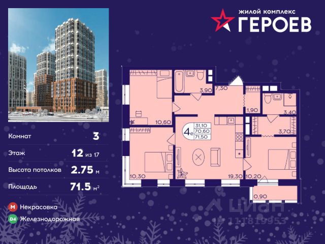 Продается просторная 3-комн квартира 66.4 кв. м c черновой отделкой в жилом комплексе "Идеал" в г. Балашиха. Комплекс полностью построен, выдача ключей в 2026 году. ЖК "Идеал" мы задаем строительные тренды в Балашихе! • Полная чистовая отделка; • Функциональная и просторная планировка; • Панорамное остекление; • Собственный подземный паркинг с прямым доступом из лифта. • Закрытая благоустроенная территория, зеленый двор без машин. • На территории комплекса кафе, магазины, аптеки, салоны красоты, детский клуб и фитнес-центр. В шаговой доступности — детские сады, школы и поликлиники. ЖК "Идеал" находится в 20 минутах на транспорте от метро Щёлковская. Рядом — природные зоны для отдыха: парк "Лосиный остров" и Горенский лесопарк. Идеальный вариант для тех, кто ценит современный комфорт, развитую инфраструктуру и близость к природе.