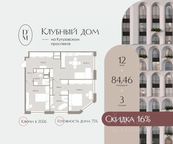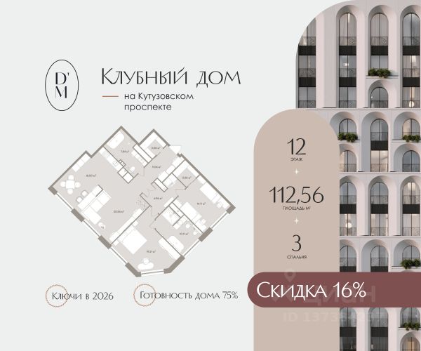 Продается квартира с 3-спальнями, в корпусе 8.2 общей площадью 156,4 кв.м. на 12 этаже. Знаковый проект для ценителей комфортной городской среды от Vesper. Квартал площадью 3,7 га расположен на Кутузовском проспекте и воплощает новую концепцию идеально сбалансированного места для жизни. Благодаря удачному расположению и развитой транспортной инфраструктуре отсюда одинаково быстро добираться как до Кремля и ММДЦ "Москва-Сити", так и до Рублево-Успенского шоссе. Планировочные решения проекта Vesper Кутузовский включают широкую линейку жилых форматов и подойдут для самых взыскательных резидентов: помимо базовых вариантов квартир доступны эксклюзивные лоты — пентхаусы с террасами и квартиры с патио. Продуманная приватная инфраструктура, собственный ландшафтный парк, близость магазинов и ресторанов делают Vesper Кутузовский достойным выбором для самых взыскательных клиентов: как для тех, кто любит уединение, так и для резидентов, которые стремятся быть в центре событий. Концепция жилого квартала разработана ODA Architecture. Разная высотность 10 строений, плавные линии и главный паттерн из арок, размер которых меняется в зависимости от дома и этажа, создают визуальный ритм квартала и делают его легким и элегантным, наполненным солнечным светом и воздухом.