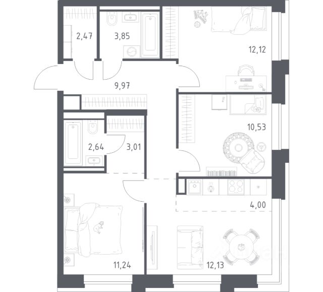 Прямая продажа от застройщика. В ЖК Сет продается 3-комнатная квартира площадью 132.84 м², расположенная в корпусе Б, на 12 этаже 59 этажного дома. Сет имеет стратегически выгодное расположение в ЗАО, в районе с большой историей и блестящим будущим: между природной зоной долины реки Сетунь и Кутузовским проспектом. В рамках возведения первой очереди предусмотрено три корпуса высотой 18, 45 и 59 этажей. На верхних этажах спроектированы общедоступные смотровые площадки с панорамным обзором на центр столицы. Преимущества проекта: • Функциональные планировочные решения • Контроль проникновения через входную дверь • Система управления освещением и температурой в квартире • Система защиты от протечек с функцией перекрытия воды • Вход в подъезд по биометрическим считывателям Face ID • Скоростные лифты • Двухуровневый подземный охраняемый паркинг на 495 машино-мест Застройка Сет включает в себя не только жилые корпуса, но и инфраструктурные объекты. Все необходимое для повседневного комфорта будет расположено в шаговой доступности: • Фитнес-Клуб с бассейном • Ведущая городская школа, детский сад и школа искусств • Центр культуры и досуга • Медицинский центр • Кафе и рестораны Расположение комплекса: Пешком: • Метро "Давыдково" - 17 минут • Парк "Долина реки Сетунь" - 3 минуты • Открытие новых станций метро в шаговой доступности в будущем Инфраструктура: Разнообразить свой день резиденты Веер смогут также проводя больше времени на свежем воздухе. Двор разделен на 4 зоны разных эмоций и действий, которые пересечены и соединены веерными прогулочными маршрутами: • Спортивная площадка устроена в глубине "Кленовой рощи" • В "Чайном домике" будет создан навес с утеплением для отдыха в любую погоду • Площадки для детей воплотятся в "Волшебный лес" с цветами, зеркалами и световым дизайном • "Центральная площадь" устроена у водного оазиса живописного пруда. На машине: • "Москва-Сити" - 15 минут • Садовое кольцо - 20 минут • ТЦ "Океания" - 8 минут • ТЦ "Времена года" - 13 минут • Сколково - 12 минут • Гребной канал - 17 минут Компания MR предлагает своим клиентам специальные условия приобретения квартир в рамках программ ипотечного кредитования от банков-партнеров.