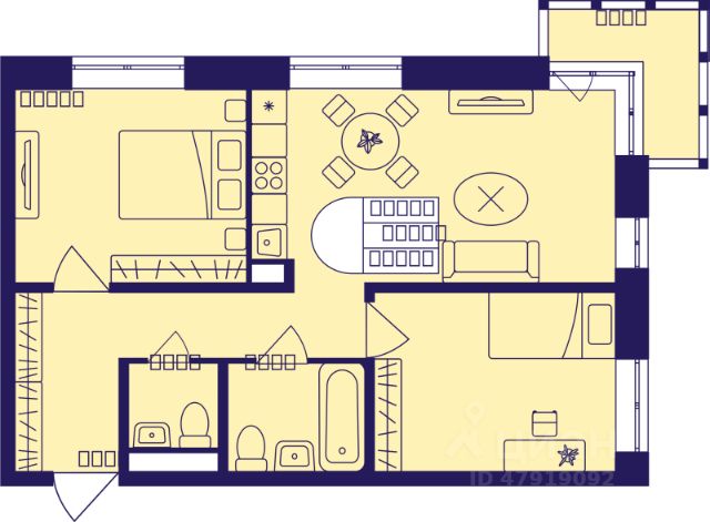 Площадь санузел (совмещенный): 4,9 кв.м.