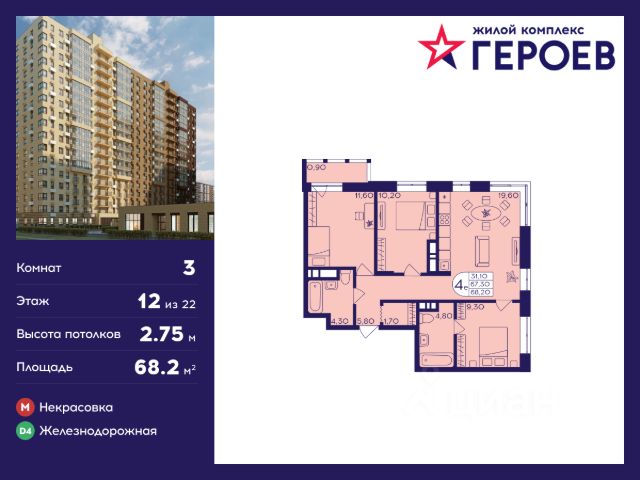Продаётся 3-комнатная квартира 71.50 кв. м. в жилом комплексе "Героев" в Балашихе, Железнодорожный. Квартира расположена на 12 этаже 410 корпуса. В наличии квартиры с отделкой. Всего 40 минут до центра Москвы. При покупке квартиры в сданном доме ключи выдаются сразу! Жилой квартал "Героев" - это уютный проект для семей с детьми. В квартале созданы все условия для досуга всех возрастов: игровые и спортивные площадки, места для отдыха и прогулочные зоны. За 15 минут можно дойти от дома до Ольгинского лесопарка, популярного места для отдыха на свежем воздухе. На территории жилого комплекса уже открыт детский сад на 250 мест и началось строительство еще одного - для 220 малышей, а также школы для 1320 учеников. Рядом работают магазины, кафе, супермаркеты, пункты выдачи. Преимущества: • В уютных светлых квартирах с просторными кухнями-гостиными удобно встречать гостей и проводить время наедине друг с другом. • Благодаря увеличенному остеклению в комнатах много света. • Квартиры продаются с отделкой, можно заселяться сразу после получения ключей.