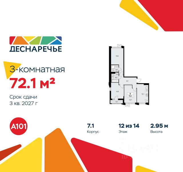 • ✓ В базе Циан 46 3-комнатных квартир на 12 этаже рядом с метро Ольховая