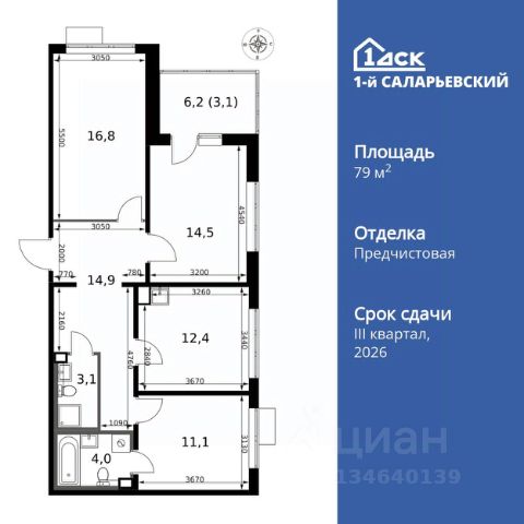 Прямая продажа от застройщика! Жилой Комплекс класса Комфорт+. Продаётся 3-к квартира номер 281 общей площадью 79.9 кв.м. на 12-м этаже 12 этажного здания. Отделка Whitebox. Цена с учётом скидки. Особенности квартиры: - Мастер-зона с санузлом. Уют и комфорт в одном пространстве. - Угловая планировка - больше пространства для ваших идей. - Увеличенная ширина окна/окон - больше света и визуального простора. - Увеличенное количество окон - дополнительное освещение и свежий воздух. - Душ помимо ванной - дополнительное удобство для вашей семьи. - Увеличенная высота потолков - ощущение простора и легкости. - Можно оборудовать 2 или более рабочих места - пространство для нескольких человек. - Можно оборудовать рабочее место - комфорт для работы и учёбы. - Просторная кухня - место для семейных ужинов и кулинарных экспериментов. - Просторная мягкая зона - комфорт и уют для отдыха всей семьи. - Линейная кухня - функциональность и практичность в одном решении. - Наличие острова на кухне - удобство и стиль для вашей кухни. - Ниша под шкаф - компактное и удобное место для вещей. - Просторная лоджия - идеальное место для уютных вечеров. Квартира с предчистовой отделкой (White box). Вам не придется заниматься черновыми и трудоёмкими работы, а чистовую отделку и дизайн - сделайте на свой вкус. Информация о комплексе: Весь микрорайон спроектирован в концепции "без машин". Пейзаж не портят припаркованные автомобили, а родители могут не опасаться за перемещение детей по всему кварталу. Территория комплекса - царство пешеходов. А что делать, если Вы или Вам подвезли чтото габаритное? Проблему решают сквозные подъезды, открывающие доступ в здание с внешней стороны комплекса. Проезд к домам организован по внешнему контуру микрорайона. Места для автомобилей отведены на 7 этажах наземного паркинга и в подземном паркинге 6-го корпуса. За порядком и безопасностью зорко следит множество камер. Безбарьерная среда облегчает передвижение по территории молодых родителей с колясками, маленьких детей и жильцов с ограниченными возможностями. Транспортная доступность: "1-й Саларьевский" расположен в Новой Москве всего в 2 км от МКАД и 5 минутах ходьбы от метро Саларьево. Если Вы за рулем, для Вас удобный выезд на скоростное Киевское шоссе. Передвигаетесь не на автомобиле? Станция метро Саларьево и автовокзал в пешей доступности. У метро находится один из крупнейших ТЦ Новой Москвы "Саларис". Это значит, что всевозможные покупки и разнообразные развлечения для всей семьи тоже рядом. Личный автотранспорт: До Киевского шоссе - 0,2 км До МКАД - 2,4 км До Калужского шоссе - 5 км До Ленинского проспекта - 3,2 км Общественный транспорт: До станции метро "Саларьево" - 7 мин пешком До остановок наземного транспорта - 5-10 мин пешком До Ленинского проспекта на автобусе - 10 мин Внутренняя инфраструктура: Во дворе царит атмосфера легкого беззаботного настроения. По сторонам расположились любимые местными жителями магазинчики, где