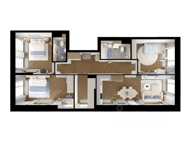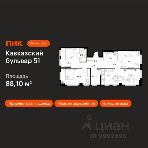 Квартира с кухней-гостиной и тремя спальнями в Квартале Герцена. Особенности планировки: второй санузел, гардеробная, окна на две стороны, постирочная, предчистовая отделка. Квартиру можно купить онлайн. В квартире выполнена отделка "под чистовую". Установлены окна с двойным стеклопакетом, радиаторы с терморегуляторами. На полу цементно-песчаная стяжка. В квартиры заведены кабели для интернета и ТВ. Входная сейф-дверь не требует замены. Организован поквартирный учёт энергоресурсов (водоснабжение, отопление, электричество). Квартал "Герцена" расположен в Бирюлёве Восточном — районе на юге Москвы. Дорога до ТТК займет всего полчаса на автомобиле, до станции метро и ж/д станции "Царицыно" — 13 минут, а до автовокзала "Южные ворота" — 20 минут. До автобусных остановок можно дойти пешком. В 2027-2028 году откроется новая станция метро "Лебедянская", дорога до неё займет всего 18 минут. Общая площадь "Квартала Герцена" составляет 27,3 га. Дома состоят из разноуровневых секций высотой от 6 до 55 этажей с видовыми террасами и балконами. На территории квартала будет построена поликлиника, детский сад на 350 мест и воспитательно-образовательный комплекс на 1075 мест, а также рестораны, клиники, магазины и салоны красоты. Объявление от застройщика. Ипотека, материнский капитал. Обмен — один из способов покупки. Обмен подойдёт, если вы хотите быстро поменять старую квартиру на новую. Получить ипотеку или рассрочку, а также обменять квартиру можно онлайн. Запишитесь на онлайн-презентацию по телефону или на сайте. квартиры в нашей базе: ГРЦ01.2-Ж4.13.14.