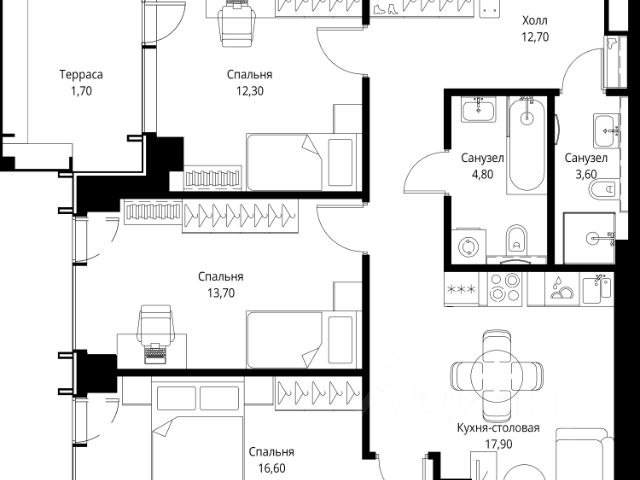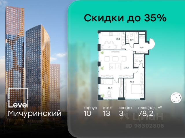 О квартире Продаётся 3-комнатная квартира общей площадью 83.1 кв.м. без отделки. Квартира расположена на 13 этаже корпуса 5.7 в жилом комплексе бизнес-класса "Среда на Лобачевского" в пешей доступности от метро "Аминьевская". О жилом комплексе "Среда на Лобачевского" полностью соответствует критериям современного жилого пространства. Взяв за основу рациональный подход, мы гармонично соединили дизайн, актуальные тренды и функциональность. Продуманный современный экстерьер и функциональные планировки внутри, приватные пространства и разнообразные досуговые зоны для каждого члена семьи — все это "Среда на Лобачевского". Инфраструктура Район отлично развит и наполнен жизнью, здесь уже есть вся необходимая инфраструктура — детские сады, школы, медучреждения, торговые центры, благоустроены парки для прогулок и отдыха, удобен и легкодоступен городской транспорт. Рядом расположены учебные корпуса крупных университетов — МГУ, МГИМО и РАНХиГС. Школы и детские сады в районе занимают высокие позиции в городских рейтингах, поэтому вам не придется беспокоиться о качестве образования детей. Как и об отдыхе: поблизости расположены живописные пруды, реки и парки. Это Парк Олимпийской деревни, Парк имени 50-летия Октября, Мещерский парк и Очаковские пруды. Теперь поставить галочки в еженедельном чек-листе "спорт-прогулки-встречи с друзьями" можно, не покидая любимый район. Особенности Особое внимание в проекте уделяется созданию функциональных пространств не только внутри дома, но и за его пределами. В ландшафтном парке "Среды на Лобачевского" расположены крытые зоны для спокойного времяпровождения, места для активного отдыха и спорта, коворкинг, соседский комьюнити-центр, водные объекты. —Ландшафтный парк во дворе. —Водный сад с зонами отдыха. —Зоны коворкинга. —Дизайнерские гранд-лобби. —Бесключевой доступ. —Подземный паркинг.