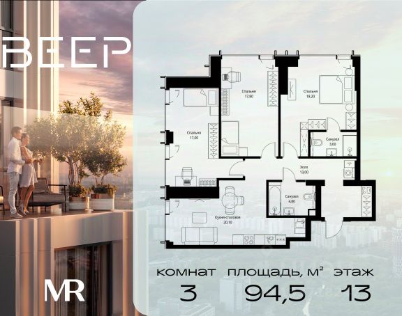 Прямая продажа от застройщика. В ЖК Сет продается 3-комнатная квартира площадью 80.70 м², расположенная в корпусе 2, на 13 этаже 59 этажного дома. Сет имеет стратегически выгодное расположение в ЗАО, в районе с большой историей и блестящим будущим: между природной зоной долины реки Сетунь и Кутузовским проспектом. В рамках возведения первой очереди предусмотрено три корпуса высотой 18, 45 и 59 этажей. На верхних этажах спроектированы общедоступные смотровые площадки с панорамным обзором на центр столицы. Преимущества проекта: • Функциональные планировочные решения • Контроль проникновения через входную дверь • Система управления освещением и температурой в квартире • Система защиты от протечек с функцией перекрытия воды • Вход в подъезд по биометрическим считывателям Face ID • Скоростные лифты • Двухуровневый подземный охраняемый паркинг на 495 машино-мест Застройка Сет включает в себя не только жилые корпуса, но и инфраструктурные объекты. Все необходимое для повседневного комфорта будет расположено в шаговой доступности: • Фитнес-Клуб с бассейном • Ведущая городская школа, детский сад и школа искусств • Центр культуры и досуга • Медицинский центр • Кафе и рестораны Расположение комплекса: Пешком: • Метро "Давыдково" - 17 минут • Парк "Долина реки Сетунь" - 3 минуты • Открытие новых станций метро в шаговой доступности в будущем Инфраструктура: Разнообразить свой день резиденты Веер смогут также проводя больше времени на свежем воздухе. Двор разделен на 4 зоны разных эмоций и действий, которые пересечены и соединены веерными прогулочными маршрутами: • Спортивная площадка устроена в глубине "Кленовой рощи" • В "Чайном домике" будет создан навес с утеплением для отдыха в любую погоду • Площадки для детей воплотятся в "Волшебный лес" с цветами, зеркалами и световым дизайном • "Центральная площадь" устроена у водного оазиса живописного пруда. На машине: • "Москва-Сити" - 15 минут • Садовое кольцо - 20 минут • ТЦ "Океания" - 8 минут • ТЦ "Времена года" - 13 минут • Сколково - 12 минут • Гребной канал - 17 минут Компания MR предлагает своим клиентам специальные условия приобретения квартир в рамках программ ипотечного кредитования от банков-партнеров.