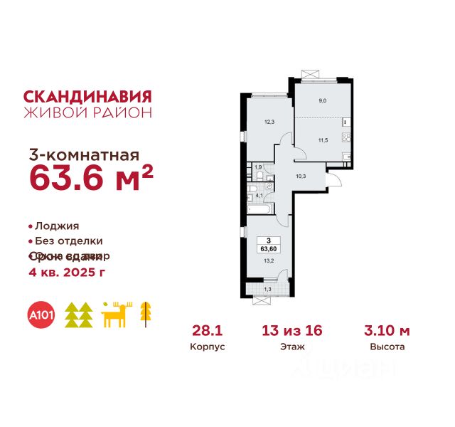 • ✓ В базе Циан 32 3-комнатных квартир на 13 этаже рядом с метро Коммунарка