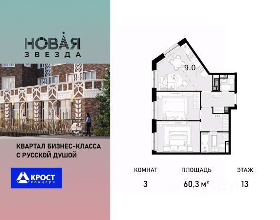 Квартира имеет удачную планировку: кухня, гостиная с выходом на балкон, три изолированные спальни, два санузла, прихожая.