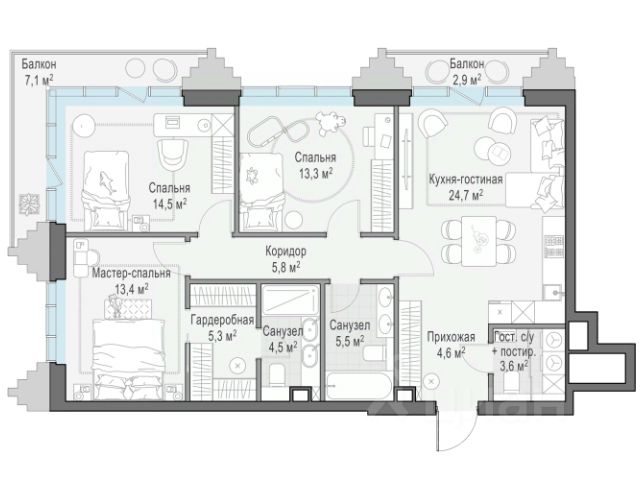В продаже 3-комнатная квартира квартира в элитном квартале "Тишинский бульвар". Общая площадь квартиры - 146.00 кв.м. Этаж 13 из 14. Корпус К3. "Тишинский бульвар" - тихий зелёный элитный квартал на Тишинке, в престижном и комфортном районе центра Москвы. В нём создан уникальный для элитного дома прогулочный бульвар в своём огромном парке 1,9 га. В парке оборудованы зоны для активного и тихого отдыха, крытые галереи, приватные зелёные комнаты, многофункциональная спортивная площадка, воркаут-зона, детская площадка, сухой фонтан, ручей. В пешей доступности Римско-католический кафедральный собор. Всего в полутора километрах от квартала находятся Патриаршие пруды - излюбленное место для летних прогулок, воскресных бранчей и романтических ужинов. Белая площадь расположена ещё ближе - на расстоянии 1,2 километра. Это точка концентрации деловой жизни и модных ресторанов. В "Тишинский бульваре" только для жителей и их гостей создан уникальный для элитного дома прогулочный бульвар в собственном огромном парке площадью 2,1 га, который занимает 70% территории квартала. Бульвар проходит через весь квартал и объединяет в общее пространство три двора: Кленовый, Рябиновый и Ивовый. В парке созданы крытые галереи и приватные зелёные комнаты для отдыха и медитаций в любую погоду. Насыщенное озеленение многолетними растениями с разными периодами цветения сохраняет территорию квартала красивой круглый год. В квартале насыщенная инфраструктура только для жителей, включая Clubhouse. Здесь оборудованы пространства для здорового образа жизни по стандарту FIT LAB: в парке - многофункциональная спортивная площадка, воркаут-зона, место для занятий йогой и медитации; бесплатный фитнес-клуб с бассейном. Для маленьких жителей доступны детская площадка и игровая комната по стандарту KIDS LAB. Дома оснащены самыми полными и лучшими системами.