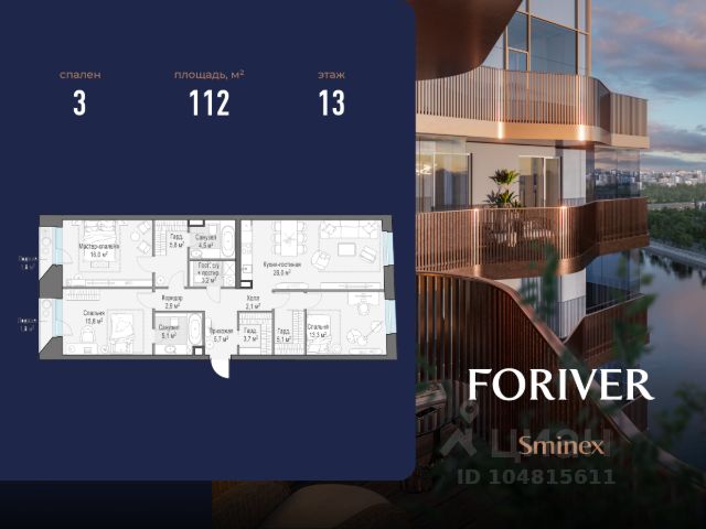 Просторная квартира с двумя спальнями общей площадью 74 м² в комплексе "Пресня Сити" на тринадцатом этаже.